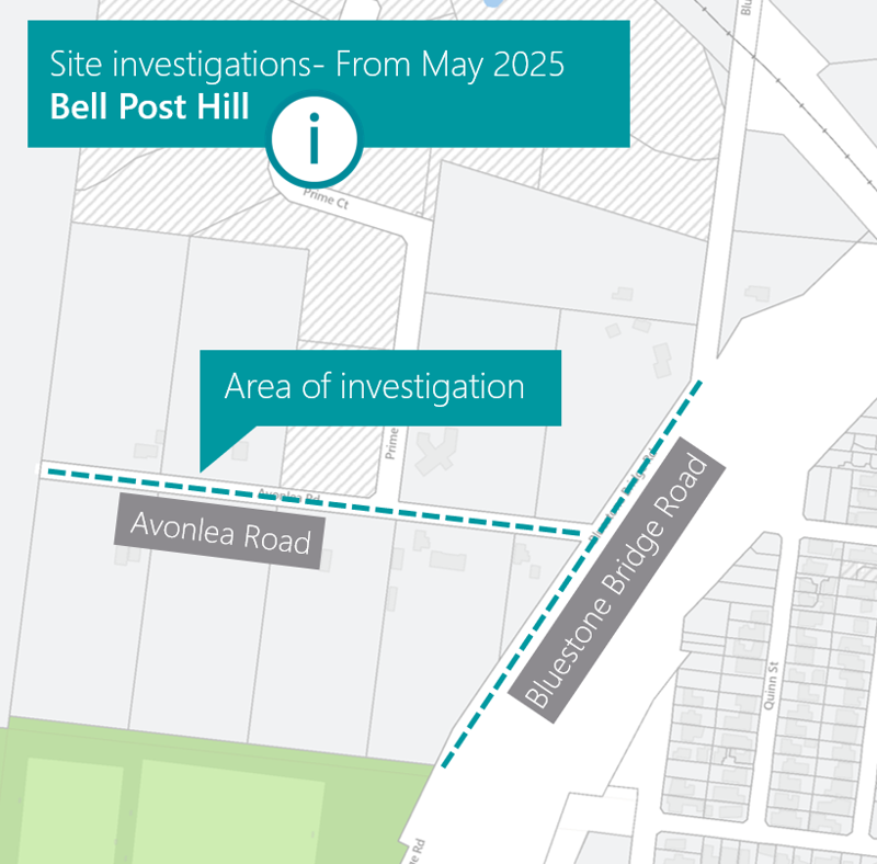 As part of planning for these works, we began site investigations along Avonlea Road and Bluestone Bridge Road, Bell Post Hill from May 2025.